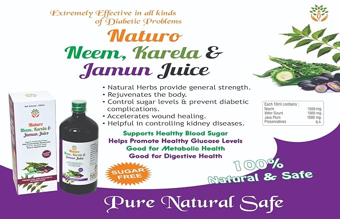 NATURA Neem Karela Jamun Juice is suitable for adults who want to support their daily wellness routine with a natural herbal drink. It is ideal for health-conscious individuals, busy professionals, and anyone looking for an easy-to-consume, sugar-free herbal supplement. This product is designed for people who prefer plant-based nutrition and manufacturer-direct quality as part of their everyday lifestyle.