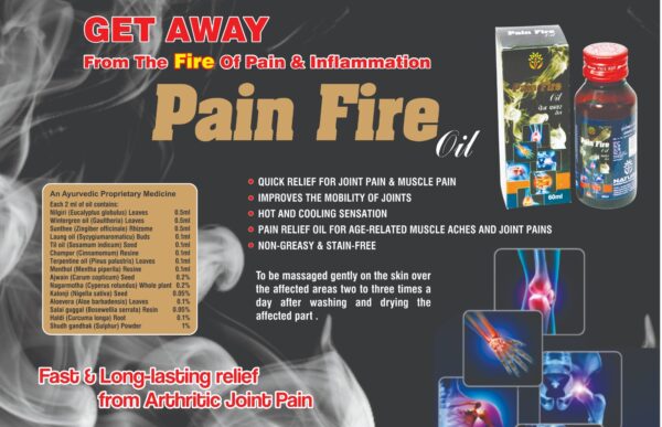 Herbal pain relief oil for joint and muscle discomfort. It emits visible smoke from the area where it is applied thereby providing the tissue warmth and healing at the same time.